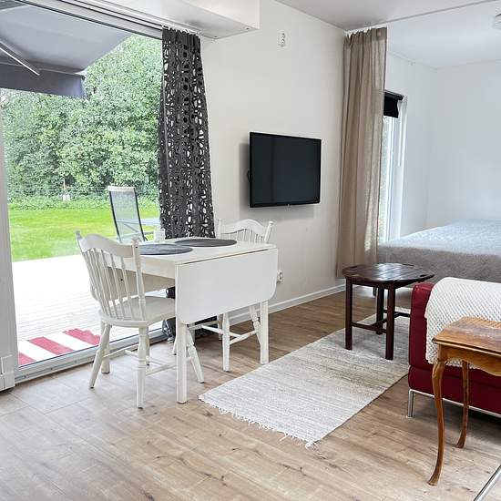 Small house with an open floor plan. Enclosed yard. South-facing patio. Service fee for tenant: 446