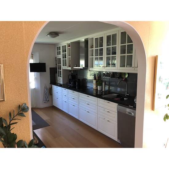 1 furnished bedroom for rent in a nice villa on Ekerö to a well-behaved non-smoking woman (ONLY FOR ONE FEMALE PERSON) The room has a 140 cm Dux bed, 36-inch flat-screen TV, dresser, coffee table, 3 wardrobes, 2 bookshelves, computer desk, armchair. Everything is included in the rent: electricity, Wi‑Fi, TV channels, Netflix. Access to a large modern kitchen, shower, steam sauna, living room, laundry room, terrace with outdoor pool, garden with fruit trees, women's bicycle, car parking. About 12 minutes by bus from Service fee for tenant: 303