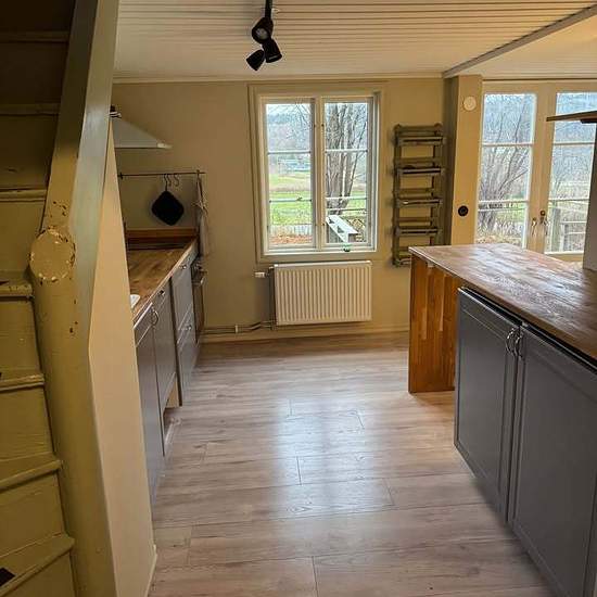 Small house for rent near Ellös; the interior was renovated in 2022. Approximately 60 sq m with 30 sq m of secondary area (sloping ceiling on the upper floor). The house is available for a 6-month period with the possibility of extension.