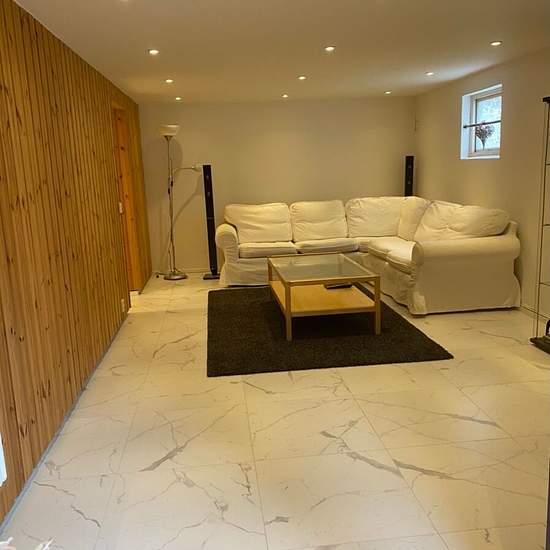 Newly renovated and well-furnished 80 m2 studio apartment in the basement of our villa with a separate entrance. Space: 1 Large Living room (shared with landlord for special occasions), 1 Bedroom, 1 Kitchen, Bathroom, laundry room Parking: Street parking outside the house. Accessibility 10-12 mins to the central station with public transport -500 meter – Grocery stores and restaurants 800-meter Fitness centre/ swimming pool, Nearest Tram stop: Eketragatan (300 mtr away) Serviceavgift för hyresgäst: 396