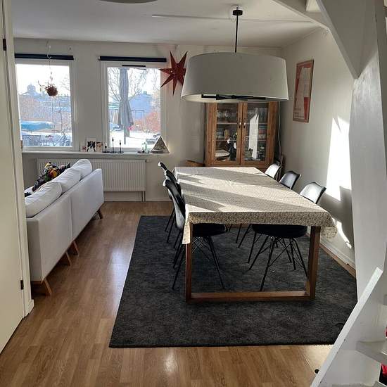 Swedish below: My two current roommates have recently graduated and will be moving out, so I am now looking for a new roommate to share our fully equipped semi-detached house with garden. I am a male in my early 30s, Swiss citizen, working in research, sporty and social, and occasionally have friends over. I’m looking for someone comfortable with sharing the house in a relaxed and respectful co-living arrangement. The house is a three-bedroom semi-detached home (~110 m²) over two floors plus attic. Your room is approx. 10 m² (3.4 × 2.8 m)...