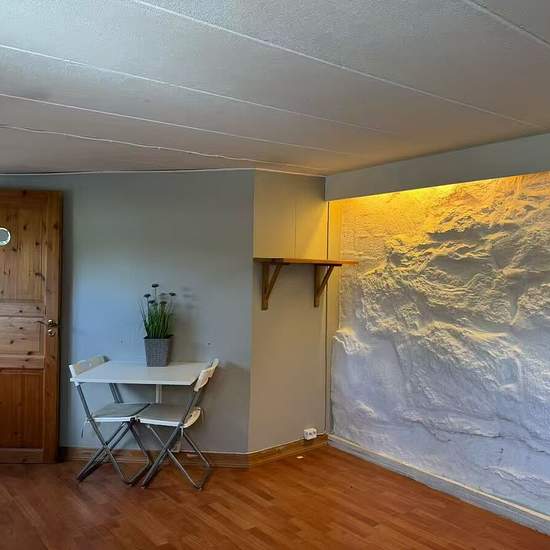 Large Studio Near Chalmers Located in a villa neighborhood, this spacious room features a private entrance, private kitchen, and private bathroom. It comes fully furnished. Convenient commute to Chalmers: Walking: 15 minutes Cycling: 5 minutes Bus: 6 minutes (direct) Suitable for a single person. Please contact me if interested. Service fee for tenant: 297