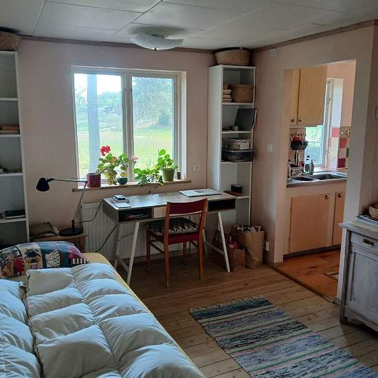 Nice, rural small semi-detached house of 35 m² for rent. I am renting out "Gamla Stugan" on my property long-term. It is located between Järna, Hölö and Mölnbo. It consists of a bright kitchen, a living room, a bathroom and a small extra room — which can be used for sleeping or storage. The house was completely renovated around eight years ago. There is both hydronic (water-based) heating and a wood-burning stove. The house is rented furnished (with the option to replace with your own furniture). The house is situated between a horse pa...