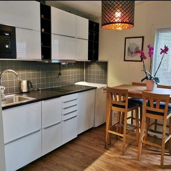 Lägenhet i anslutning till villa uthyres 25 kvm , fullt möblerad med egen ingång, köksdel och badrum. I ett lugn område i Stuvsta och nära gångavstånd till pendeltåget. 15 min till T-centralen. Uthyres till en lugn person. Husdjur ej tillåtet. El och internet ingår i hyran. Deposition motsvarande 1 månadshyra och hyran betalas månadsvis i förskott. Tidsbegränsad uthyrning. Serviceavgift för hyresgäst: 476