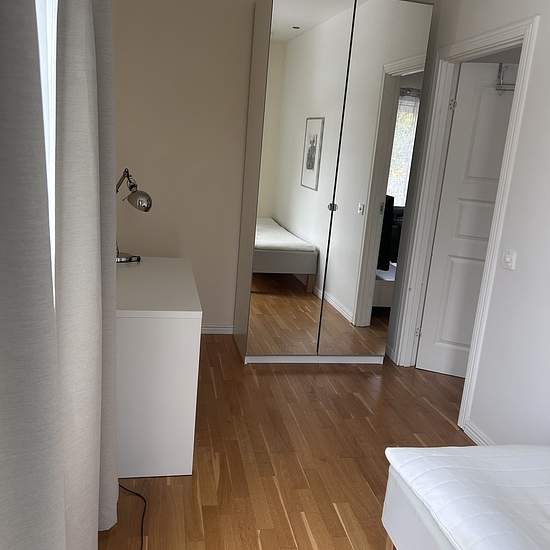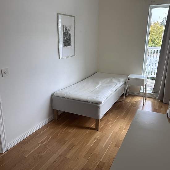 You rent your own bedroom of about 10 sqm with shared spaces (in a villa) such as two bathrooms with showers, a large kitchen and a separate living room with a balcony. The total area of the villa is 160 sqm. Currently three quiet people also live here (one woman and two men) who have lived here for a long time. The villa is located near Barkarby station, close to grocery stores and public transport, etc. The rent of 6,500 SEK/month includes heating, water, internet and cleaning of the common areas. Parking is available for an additional 500...