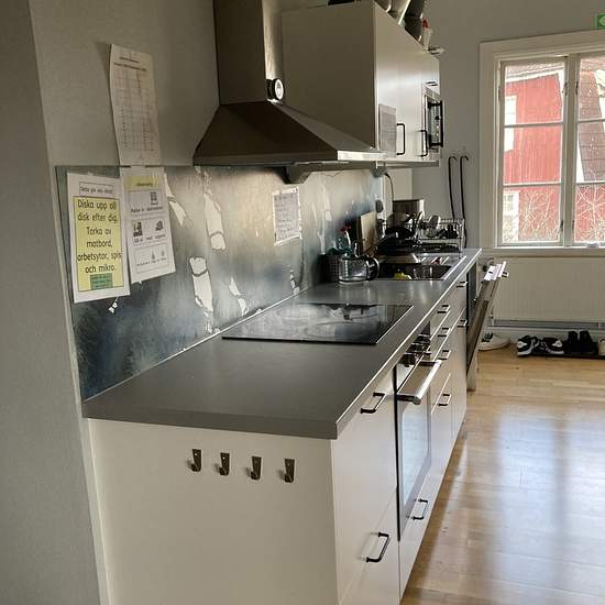 Room in a student flat suitable for weekly commuters or students Next to the city park and a 15-minute walk to the university, you live in an old, charmingly renovated house in a quiet area. 100 meters to the bus stop. We rent out a room where you share common areas with 4 other friendly guys who each have their own room with their own locks. The shared areas are a large common room, a new kitchen, 2 toilets/showers and a laundry room. Cleaning of the common areas is included every 14 days. The rent is 4,400 SEK Included: fast internet/br...