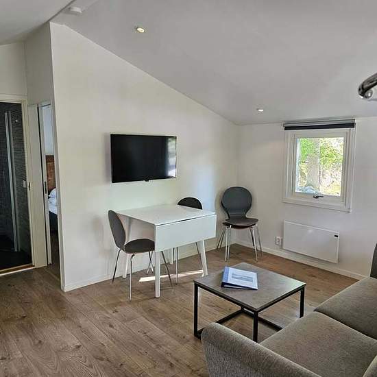 We have the affordable accommodation option for the period of September 2025 – March 2026 in Karlshamn. You rent per calendar month. The cabins range from 32 to 60 square meters for 4 people, with a living room kitchen area, toilet and shower, and a terrace with parking outside the door. The cabins are fully equipped and furnished. We offer not only accommodation that makes the whole family happy, but it also provides freedom and proximity to nature.