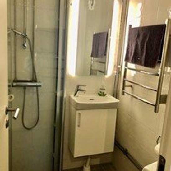 Guest house built in 2019, it is a well-planned and well-equipped 1.5-room unit. Bathroom incl. shower. Kitchen area with a drop-leaf table, kitchen utensils and a fridge with a freezer compartment. Hob with two burners. Combined oven/microwave. No dishwasher. Sofa bed that easily converts into a bed with a sleeping width of 140 cm. TV screen. The tenant provides their own Wi‑Fi. Sleeping alcove with a 105 cm bed. Good storage options for clothes. Two terraces facing east and west, respectively. 10-minute walk to the very nice bathing coves ...