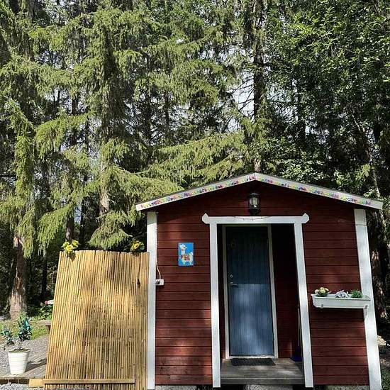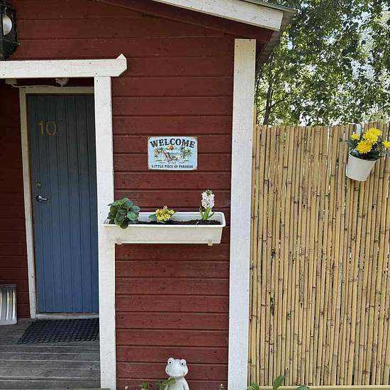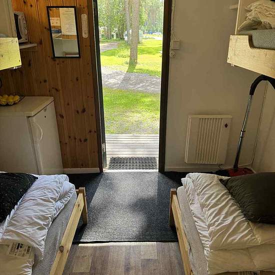 Hi — do you want to live in a very scenic, beautiful natural setting while still being close to town? Then renting a cottage full-time year-round at Lit’s campsite might be for you. Avoid living in an apartment and having neighbors right next door. Wake up to birdsong in nature instead. We have cottages of 8 sqm, 16 sqm, 35 sqm, as well as caravans for rent. My smaller cottages do not have running water, so you have full access to the service building where there are showers, toilets, and a kitchen. You will also find the laundry room the...