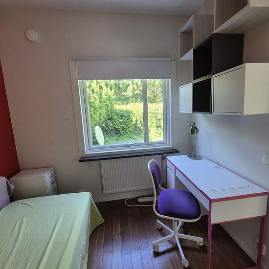 Room in House first floor with bathroom. Room has room key to lock. Wifi,Electricity, Water, heating and parking all included. Window faces to Garden view. Access to shared kitchen(fridge, Microwave, induction cooker,kitchen utensils), living room with TV and dinner table ,laundry room (washing machine, dry machine) in the basement . Only for girl to stay. Located in a quiet area, just 5–15 minutes’ walk to various Lund University departments. Supermarket and Bus 7 to Lund C are nearby. Serviceavgift för hyresgäst: 321