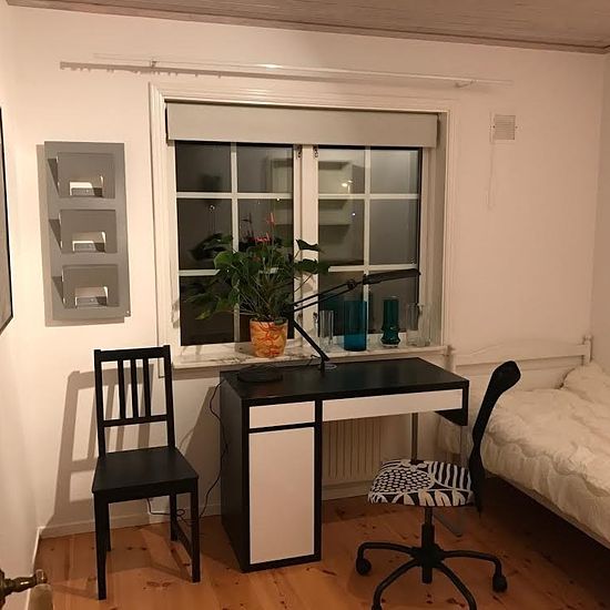 Large villa (student house) 350 sqm, 3 floors with garden. Hyra 6250 SEK. The bus stop is 2 minutes from the house. 2 living rooms and dining room. All rooms are furnished and bedding is included (pillow, duvet and sheets). Also included is dish liquid, sponge, scrub brush, dish brush, hand soap and toilet paper. Room is 11 m2 and has 2 wardrobes The rent includes: Electricity, water, heating and Internet. A cleaning company will come and clean public areas and toilets/bathrooms. Welcome to a viewing, make an appointment our contact me . ...