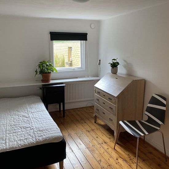 Fully furnished room in our guesthouse. You share kitchen, bathroom, washing facilities and the private garden with two other female students. From 15th of August 2026 we will have two rooms located on the first floor available. The house was renovated in 2020. Female non-smoking students only. Pets not allowed. Rent 4800 SEK/month including electricity, heating, water, garbage collection and internet. The house is located at Mellanheden, a quiet neighbourhood in the central parts of Malmoe. You live close to the beach and within biking dist...
