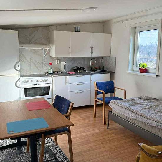 Hi. I have a cottage for rent; it has one bedroom, a kitchen, a toilet with a shower, a small hallway, and a balcony. You can move in as soon as possible and stay as long as you want and are comfortable. The cottage is in Norrköping, out in the countryside. Service fee for tenant: 292