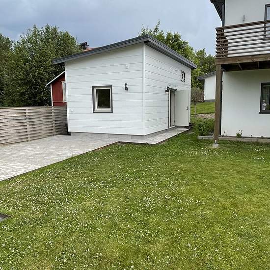 Attefallshus med litet sovrum och sovloft. Golvvärme. Wifi 5000kr/mån Serviceavgift för hyresgäst: 247