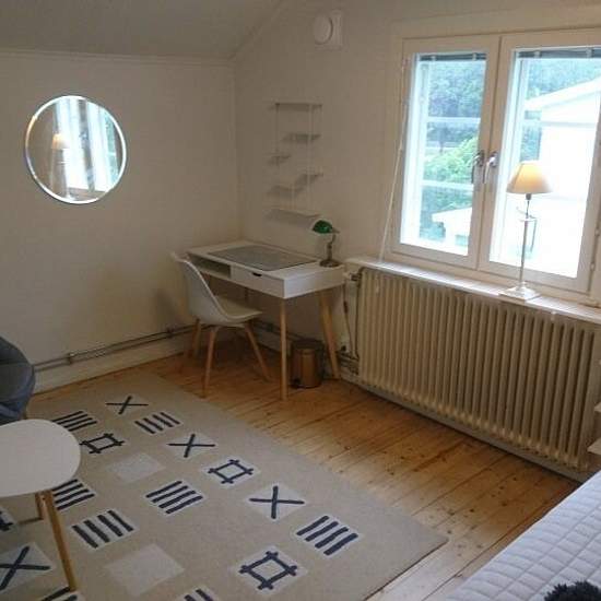 One bright, nicely furnished room of approx. 12 sqm in an older villa located in Partille, for rent to one well-behaved, non-smoking, female student. The room is one of three and is located on the 3rd floor, with access to a kitchen, living room and a bathroom with a washing machine. Common areas are shared with two existing female tenants (students). The villa is situated close to Partille commuter train station, a 5-minute walk, and the bus terminal & Allum shopping center, an 8-minute walk, as well as gyms and restaurants. Approx. 7 minut...