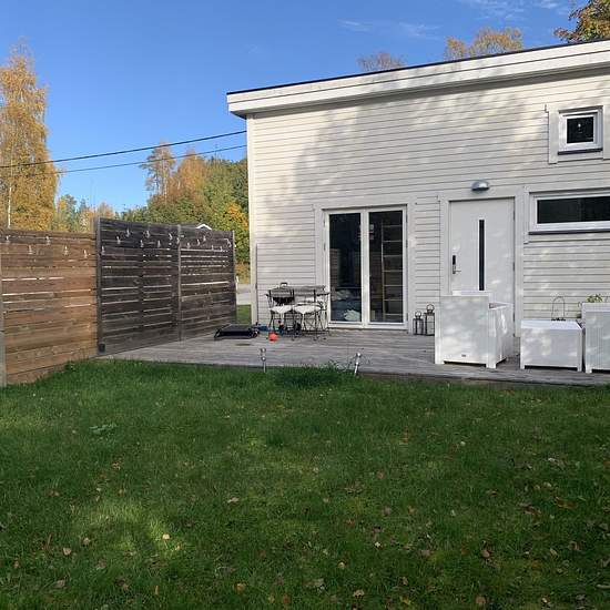 Before you get in touch, read the ad carefully! If you're interested, write and tell me about yourself. Attefall house in Uttran / Tumba for rent, close to woods and lakes! The house is 25 + 10 sqm (loft), completed in 2020, and has its own parking, private garden with a deck, and all amenities: air-source heat pump/AC, microwave, stove, oven, dishwasher, shower, washing machine, TV. Lower floor: hallway with storage, kitchen and living room (and/or bedroom if desired) in an open-plan layout, bathroom. Upper floor: a loft that can be used ...