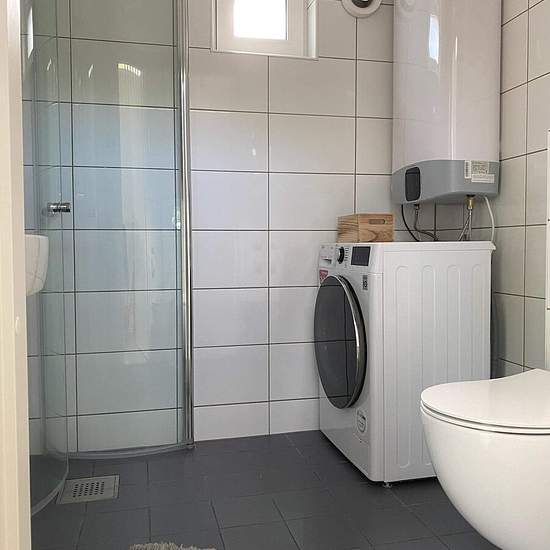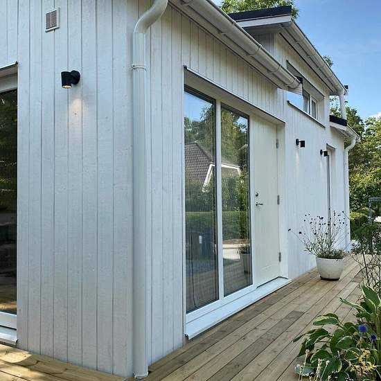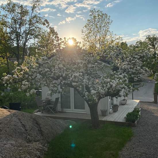 The house is located in Saltsjö-Boo, Nacka, in a very quiet area close to bathing spots and walking/running trails. A bus stop (Kompassvägen) is a 3-minute walk from the house, with buses taking you to Slussen in about 25 minutes. Entrance level of 30 sq m plus a loft of 11 sq m (low ceiling height). Electricity, water, internet, one parking space and an outdoor patio are included. There is an air heat pump (which also provides cooling on warm days), TV, refrigerator, freezer, dishwasher and a combined washer/dryer. Service fee for tenant: 663