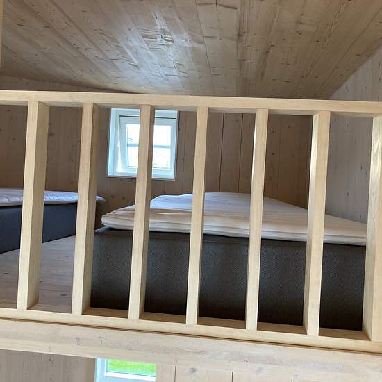 En fräsch Attefallsstuga på 20kvadrat plus två sovloft á 8 kvadrat. Byggd 2021/2022. Möblerat och med två bäddmadrasser på sovloften,och en bäddsoffa i ena änden av huset. I den andra änden ett rejält kaklat och klinkat badrum med golvvärme. I mitten köksdelen med modern utrustning och ett köksbord med två stolar. Träpanel genomgående i stugan. Huvudentre med dewa kodlås, plats för ett mindre bord och några stolar. Köksdörr ut till den stora gräsmattan med utemöbler och grillar. Solen är nångång under hela dagen på framsidan eller baksidan. ...