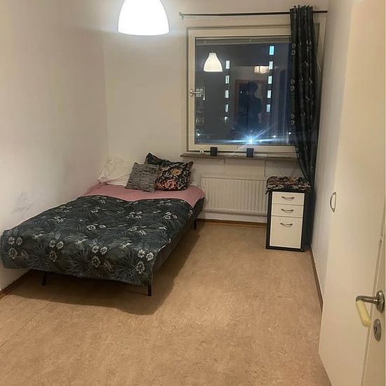 Room for rent to one person. No deposit, one month's notice. No pets, no smokers. Located near Sollentuna train station and the town center. Available immediately.