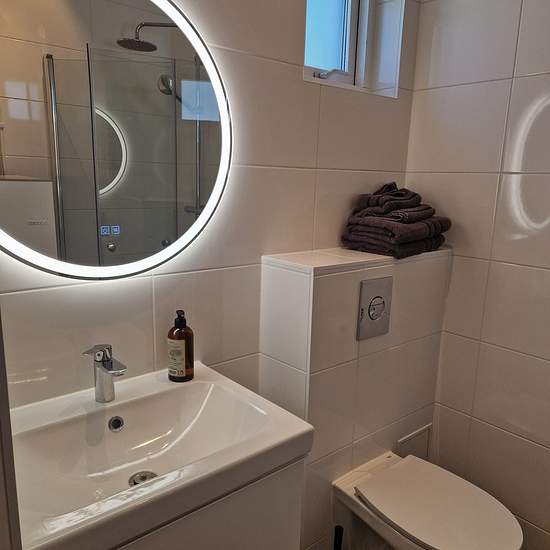 Attefallshus möblerad med dubbelsäng, bäddsoffa och tv Serviceavgift för hyresgäst: 595
