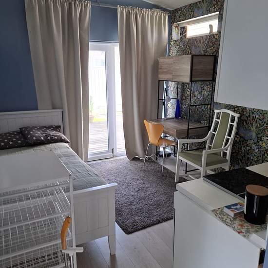 Liten charmig stuga på Styrsö. Ett par minuters promenad från havet! Här bor du med egen altan, grill, lummig trädgård och boende i kompakt format. Ett ljust allrum med 1säng, skrivbord, pentry samt ett eget fräscht badrum med dusch och toalett. Perfekt för en som vill njuta av lugnet i Göteborgs vackra skärgård. Snabb kommunikation med ”snabb färjan” 12 min in till Saltholmen, där bussen ”ö-snabben” väntar in till centrum på ca 10 min. Möblerat, Internet och el ingår i hyran. Serviceavgift för hyresgäst: 334