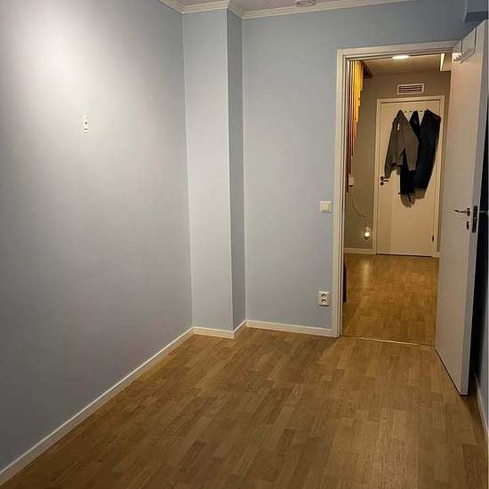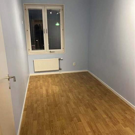 1 room, access to kitchen, 2 bathrooms (including bath/shower), washing machine/dryer, large living room, small patio at the front, large terrace on the lower level. Leafy townhouse neighborhood, close to a bus stop with connections to Tumba C.