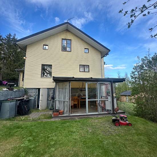 Ligger avskilt intill bilväg i Tumba. • 3 min till pendeltåg och buss. • 7 min till centrum. • Närmsta grannen är kossor och majsodling. • Delad övervåning. Serviceavgift för hyresgäst: 386