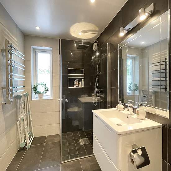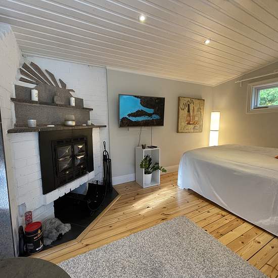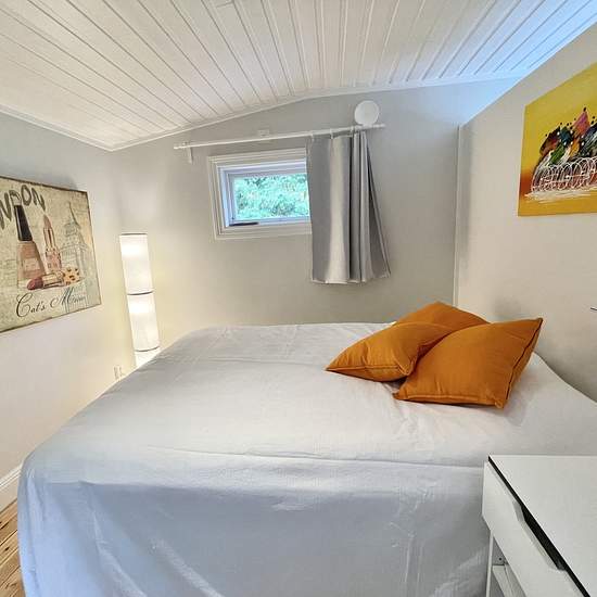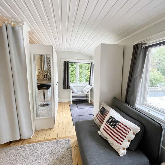 Newly renovated 40 m2 guest house with a 45 m2 large terrace is rented out furnished and with kitchen equipment. The house has a modern open-plan layout, a nice fireplace and a 140 cm-wide bed, as well as a recently extended bathroom with a shower and a combined washing machine and dryer. The guest house is located on our villa plot in Gimmersta, which is one of Tyresö's most popular residential areas. Buses run frequently from Strandtorget to the city and take about 40 minutes depending on the time of day. The residential area is directly a...