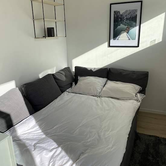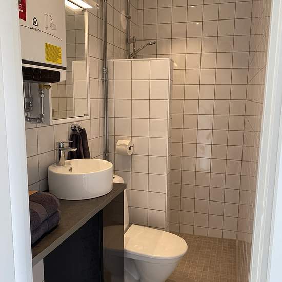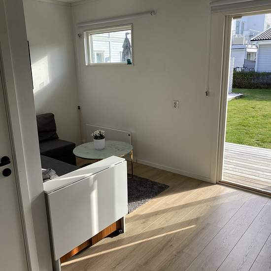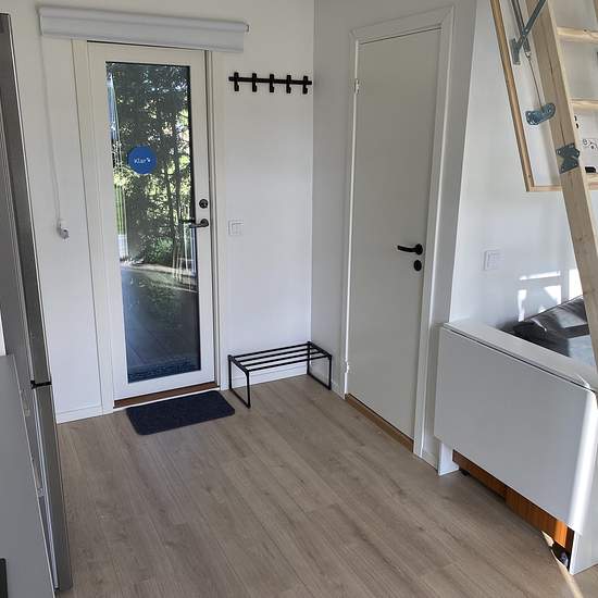 A cozy small residence close to nature in one of the municipality's most attractive areas. 300 m to a bus that takes you to Väsby Station or the Rotebro commuter train. Approximately 20 m² with its own entrance. Sofa bed as well as a sleeping loft and a small table. The sleeping loft has a width of 120 cm and is 3.5 m long. Fully tiled bathroom with shower and washing machine. Within walking distance to a swimming lake, running trails, and an outdoor gym. Service fee for the tenant: 404