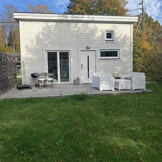 Innan du hör av dig, läs annonsen noga! Är du intresserad, skriv och berätta om dig själv. Attefallshus i Uttran / Tumba uthyres, med närhet till skog och sjöar! Huset är 25 + 10 kvm (loft), färdigställdes 2020, och har egen parkering, egen trädgård med altan, samt alla bekvämligheter: luftvärmepump/AC, micro, spis, ugn, diskmaskin, dusch, tvättmaskin, TV. Nedre plan: hall med förvaring, kök och vardagsrum (och/eller sovrum om man så önskar) i öppen planlösning, badrum Övre plan: ett loft som kan användas som sovrum och/eller förvaring. ...