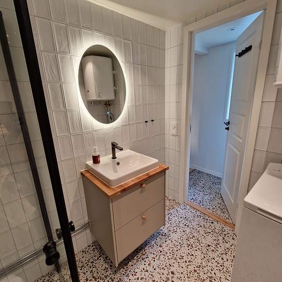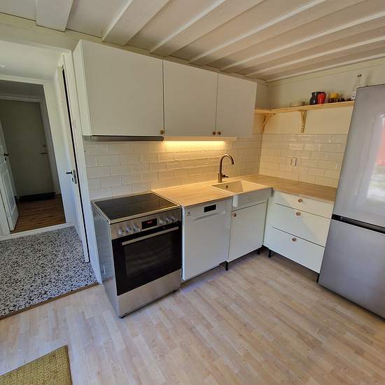 Please note: We believe that you will need a car when living here! We are looking for a permanent tenant for our newly renovated cottage. We are a young family, we live in the villa next door, and both buildings are surrounded by a large garden with a dedicated garden area for you. So if you like gardening or just sitting outside in the evenings, there will be space for you! The cottage is newly insulated and has underfloor heating in the bedroom, bathroom and hallway. All appliances in the kitchen and bathroom are completely new. The cot...