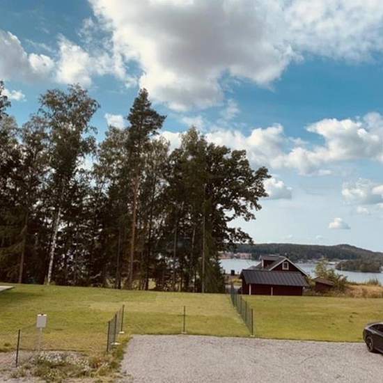 Close to the beach. The nearest center, Vårby Gård, is about a 5-minute drive away. Lake view. Private terrace with lake view. Private entrance to the house. One parking space is available. Service fee for tenant: 535