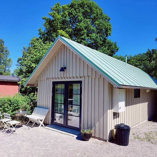 Recently renovated cottage with sleeping loft and sofa bed in a scenic environment. 150 meters to the swimming area and the sea. 2.5 km to Västervik's center. Living room with fully equipped kitchen, washing machine, TV, and Wi-Fi. Dining table and sofa bed. Sleeping loft with double bed and separate bedroom with double bed. Private parking. The accommodation is located in a nature reserve with hiking trails and barbecue areas. 1.5 km to the golf course. Service fee for tenant: 346.
