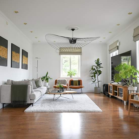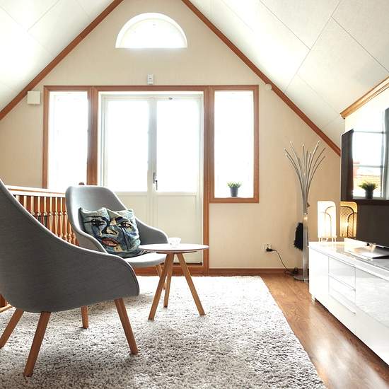 Access to other areas of the house, including the sauna and indoor and outdoor spa baths. The rent includes Wi‑Fi and consumables such as toilet paper and laundry detergent. A gym with a spin bike and dumbbells, yoga mat, etc. Free access to coffee and the espresso machine. The room is directly adjacent to a WC and sink; the shared shower/bathtub/sauna is on the upper floor. The room has a large walk‑in closet of about 6 m², as well as a desk, chair and a 49‑inch wall‑mounted TV. The double bed is 140 cm. The room is suitable for a woman/...
