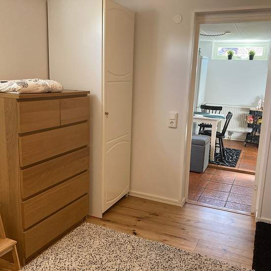Furnished room with private entrance for rent in western Gothenburg The apartment is furnished and has two bedrooms, a kitchen and a bathroom. One of our tenants is moving out. Move-in on March 1st. There may be a possibility of an earlier move-in. The apartment is a separate part of a villa and you share the bathroom and kitchen with the other tenant. The other room is rented by a 21-year-old female student. Free parking, private entrance and a patio. Electricity, heating, water and broadband are included, and bed linen and towels can be p...