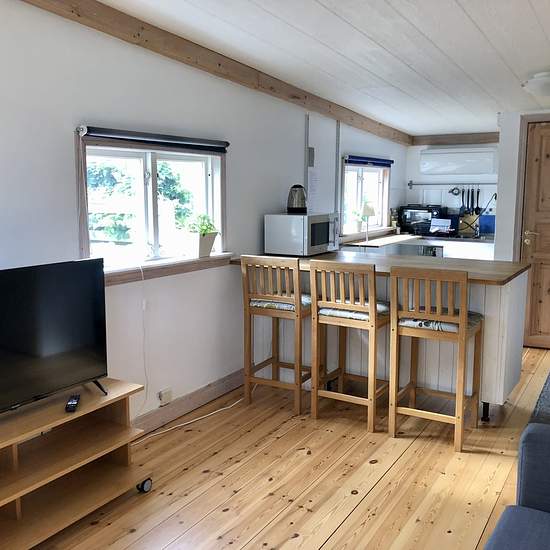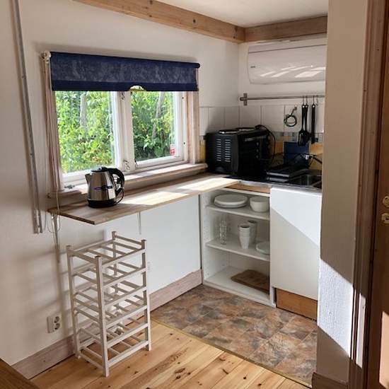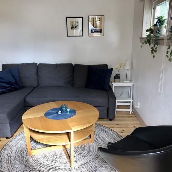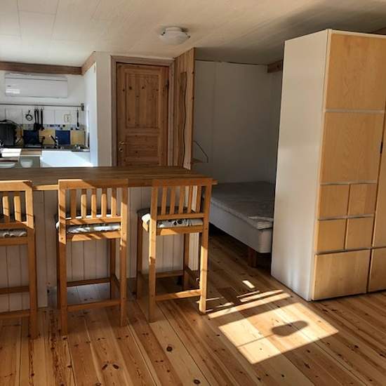 Furnished apartment of 25 sqm for rent at Helgövägen 23 in Öjaby, Växjö. The apartment is a small house with some lake view and consists of one room with a kitchenette and a bathroom with shower. The apartment is located separately on the lot where the landlord lives (with children part-time and 2 dogs). The apartment is in good condition and has been partly recently renovated. The apartment includes its own parking space and a secluded patio. The apartment is a ten-minute drive from a gym, running trails, Arenastaden and shopping centers. I...