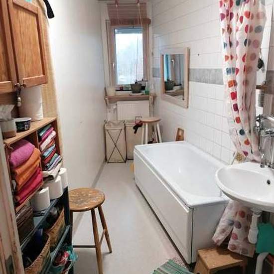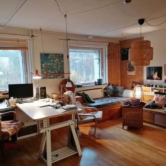 ATTENTION: LOOKING FOR A NEW ROOMMATE We are looking for a new flatmate for our small 2–3 person collective in the large co-op Stacken. Our 3.5-room apartment is 80 m² with a large living room. The place is available from the 1st of March or April (we can be a bit flexible). The room is 10 m² and partly furnished. Rent is SEK 2,400 + utilities ≈ SEK 2,700. The rent is low, but you contribute 10 working hours per month to the house. The atmosphere is relaxed. We hang out sometimes but also value lots of me-time. It’s good if you enjoy tak...