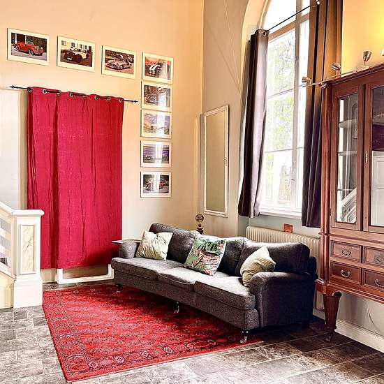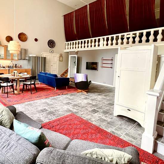Whole apartment or rooms for rent! Fully furnished grand apartment in the heart of Smedjebacken! 160 sqm with a terrace! 12 minutes from Hitachi and 25 minutes from Romme Alpine. Right in the centre, close to shops and restaurants. A stone's throw from the harbour and the popular restaurant BRYGGAN. Buses around the corner and a 5-minute walk to the train station. Beautiful nature and excellent game fishing in the river right on the doorstep. A very impressive duplex apartment with 8 m ceiling height in a newly renovated 1880s church. This i...
