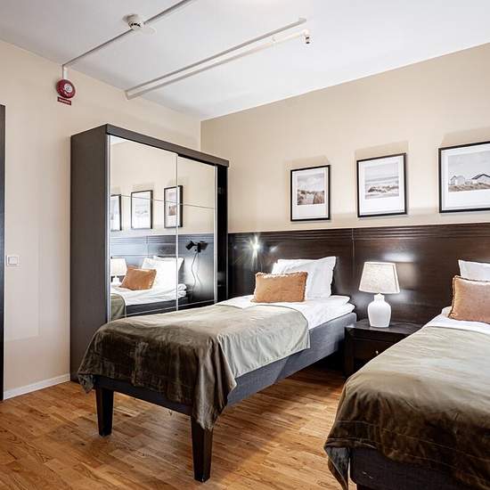 Flexible accommodation solutions for companies and private individuals - 183 rooms Solna Park & Hotel offers flexible and pleasant accommodation for assignments or projects, for both shorter and longer stays. We can accommodate both small and large groups and tailor the setup to your company's needs. This modern hotel is a 5-minute walk from Ulriksdal station and a 10-minute train ride from Stockholm Central Station. The hotel offers free Wi‑Fi and air-conditioned rooms with a flat-screen TV, wood floors and, in many cases, a seating area....