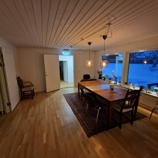 COMPANY ACCOMMODATION This house in central Umeå is rented out to companies and their employees for projects around Umeå. House with 19 beds in 12 bedrooms. There are 6 bathrooms, living room, dining area, kitchen and laundry room. Free parking in the driveway. Fully equipped and fully furnished. Good standard. Minimum number of beds to rent: 10 Rent/night/person: SEK 175 The accommodation includes: - Internet / Wi-Fi - Parking spaces - TV - Laundry room with washer and dryer - Fully equipped kitchen - Terrace - Electricity, heating and h...