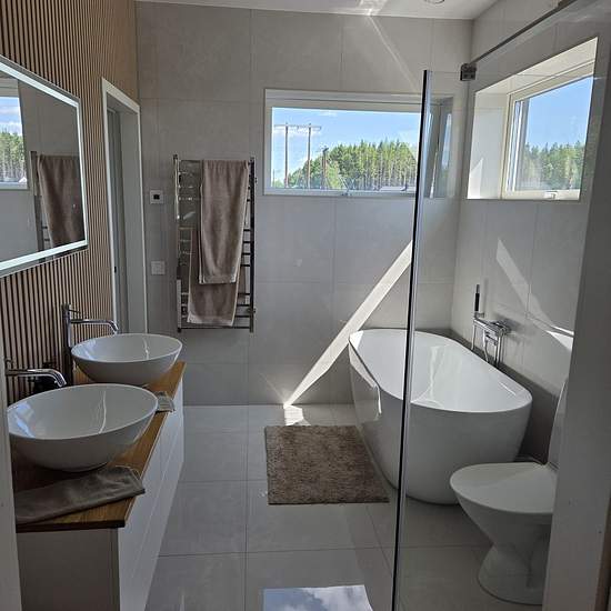 Beautiful and almost new (only 2 years old) high-standard villa for rent. The house has 4 spacious bedrooms, 2 bathrooms, one of which is en suite. Fully equipped laundry room, large pantry (walk-in), stove with both induction hob and gas, and a fireplace. Two living rooms, a well-kept large garden, double garage, AC and solar panels. We are moving due to new job opportunities. Service fee for the tenant: 792