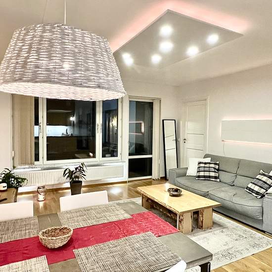 Here you have a 49-square-meter apartment. A gem with an impressive lake view, about 50 meters to a cozy sandy beach and a generous 12-square-meter terrace, perfect for relaxation. Most of the furnishings are handmade and carefully selected, giving a unique and tasteful atmosphere. It also offers all the amenities you could wish for, including a dishwasher, washing machine, tumble dryer and more. A harmonious combination of style and practical living. Very quiet and pleasant area with proximity to town and nature. Service fee for tenant: 654
