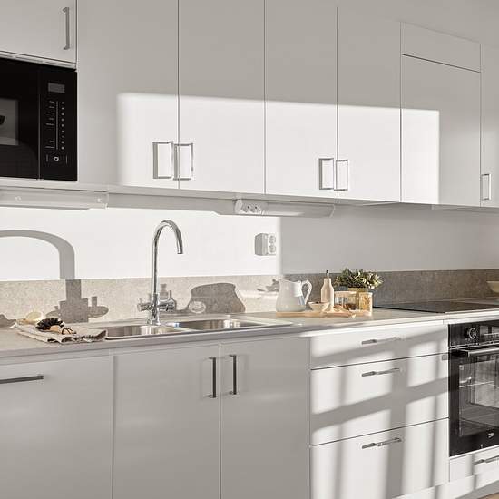 Soon a fantastic two-room apartment on the 1st floor (of 10) will be available in the lovely pink house in Älvängen! All apartments offer accommodation of a high standard both indoors and outdoors. We have an open-plan layout between the kitchen and living room. The kitchen is a white quality kitchen from Vedum, of course equipped with a dishwasher and a built-in microwave. The kitchen has a grey-beige stone countertop that also serves as the splashback on the wall above the counter. In the fully tiled bathroom there is a washing machine a...