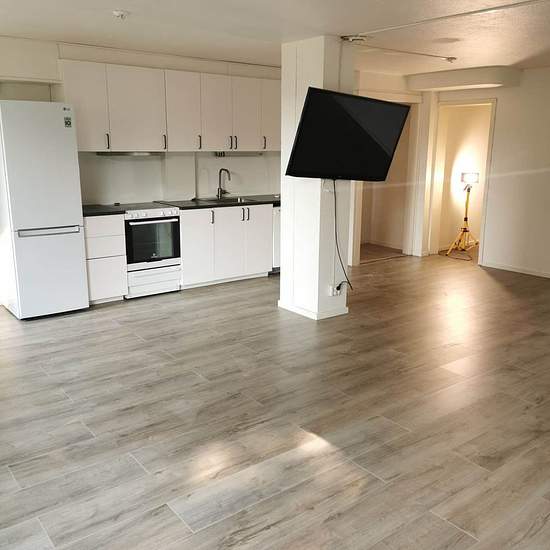 Newly renovated large and fresh two-room apartment of 80 sqm in central Älvsbyn, available from October 1. The apartment is equipped with both a washing machine and a dishwasher, and has a modern layout with an open-plan living room and kitchen. During the renovation the apartment received new surface finishes in all rooms except the bathroom. The rent is 7,821 SEK/month; electricity costs are paid by the tenant. Parking available with an engine-heater outlet. If interested, please write here on Blocket. Service fee for tenant: 387