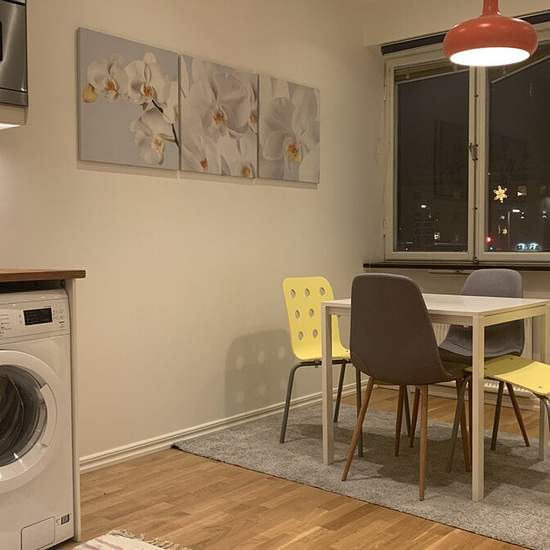 In the heart of central Älvsjö, a 2-minute walk to the commuter train, this condominium is available for rent. Nearby are a library, grocery stores, restaurants, a hairdresser and health centers. The total area is 58 m². Renovated apartment with a completely new bathroom and kitchen. Open-plan living room and kitchen with completely new cabinet doors and new appliances: refrigerator, freezer, stove, extractor fan, microwave, dishwasher and washing machine. The bathroom has underfloor heating and an electric towel warmer with a shower enclosu...