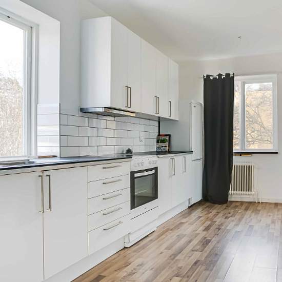 About the apartment Here you live comfortably and pleasantly with a well-equipped kitchen from HTH, including an oven, extractor hood, and pantry. Newly renovated shower/WC. New floors throughout the apartment. The apartment is located on the first floor. SURROUNDINGS The area is located in southern Åmål, about 1 km from Åmål city center. It is a leafy and nature-close area with large grassy areas. Child-friendly area with a large lawn next to the property. TRANSPORTATION Good bus connections and nice bike paths into Åmål city center. ...