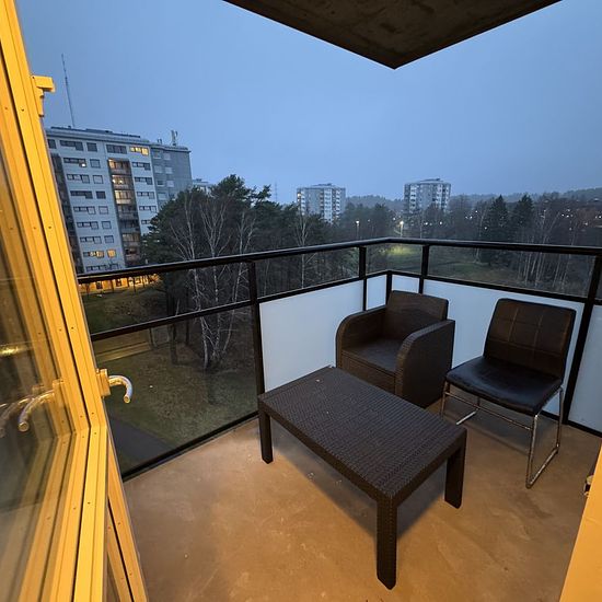 Fin 2-rumslägenhet uthyres på 5:e våningen med hiss och en trevlig utsikt. Lägenheten är ljus och välplanerad, vilket skapar en bekväm och trivsam boendemiljö. Lägenheten hyrs ut delvis möblerad, vilket gör det enkelt att flytta in direkt samtidigt som det finns möjlighet att sätta sin egen prägel på bostaden. I området finns goda kommunikationer med busshållplatser nära, vilket gör det enkelt att ta sig till andra delar av staden. Inom kort avstånd finns även matbutiker som Willys, flera pizzerior och andra servicebutiker. För barnfamilj...