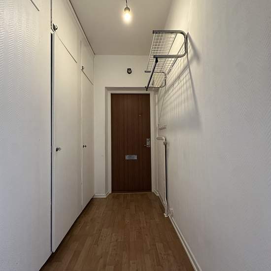 Well-planned 2-room apartment with generous storage and a large balcony In the hallway you are met by generous storage possibilities thanks to built-in wardrobes running along the wall. The spacious living room has herringbone parquet and offers plenty of space for both a sofa area and a dining table. From here you also reach the large balcony with views over the quiet inner courtyard. The kitchen is practically laid out with good work surfaces, plenty of cabinet storage and room for a dining table by the window. The bedroom has space for a...