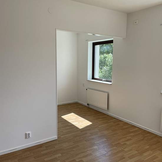 Renovated apartment in central Arboga. The building is located in a family-friendly, quiet area within walking distance of the town centre. The apartment was renovated in May 2022. New bathroom with tiled walls and floors and a glass shower wall. Spotlights in the ceiling and underfloor heating in the bathroom. The kitchen was updated at the same time, including a new countertop, dishwasher, new appliances, and a range with a convection oven and induction cooktop. New surface finishes throughout the apartment in 2022, as well as new flooring...