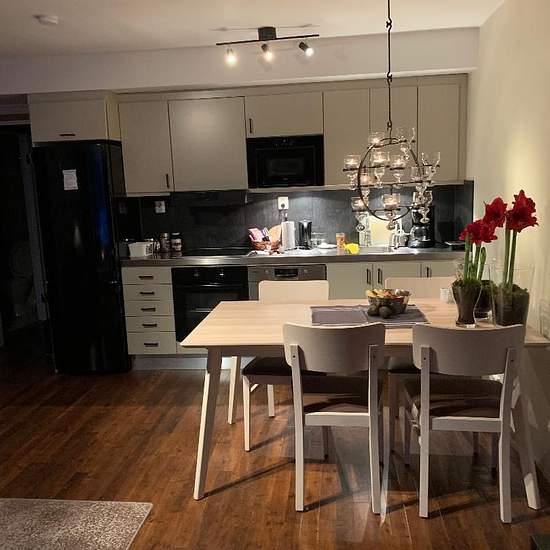 Apartment in the middle of Åre Strand. Open-plan kitchen and living room 1 bedroom Kitchen fully equipped, microwave oven. Washing machine, drying cabinet and sauna. The bathhouse is in the building next to Holiday Club. There is a restaurant there. This is included: The rental period is week 52 Bed linen and towels Final cleaning Service fee for tenant: 495